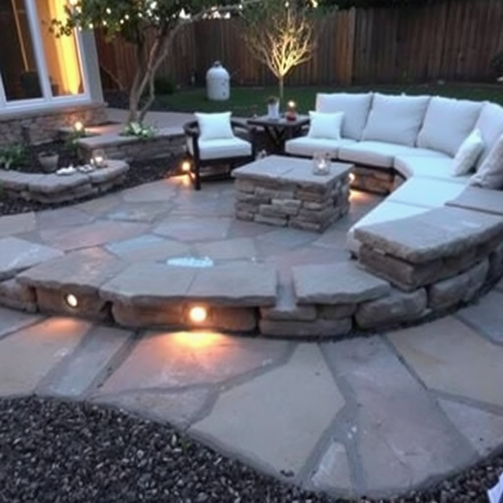 Durable patios, paths, lighting, and seating designed for resilience and year-round use.